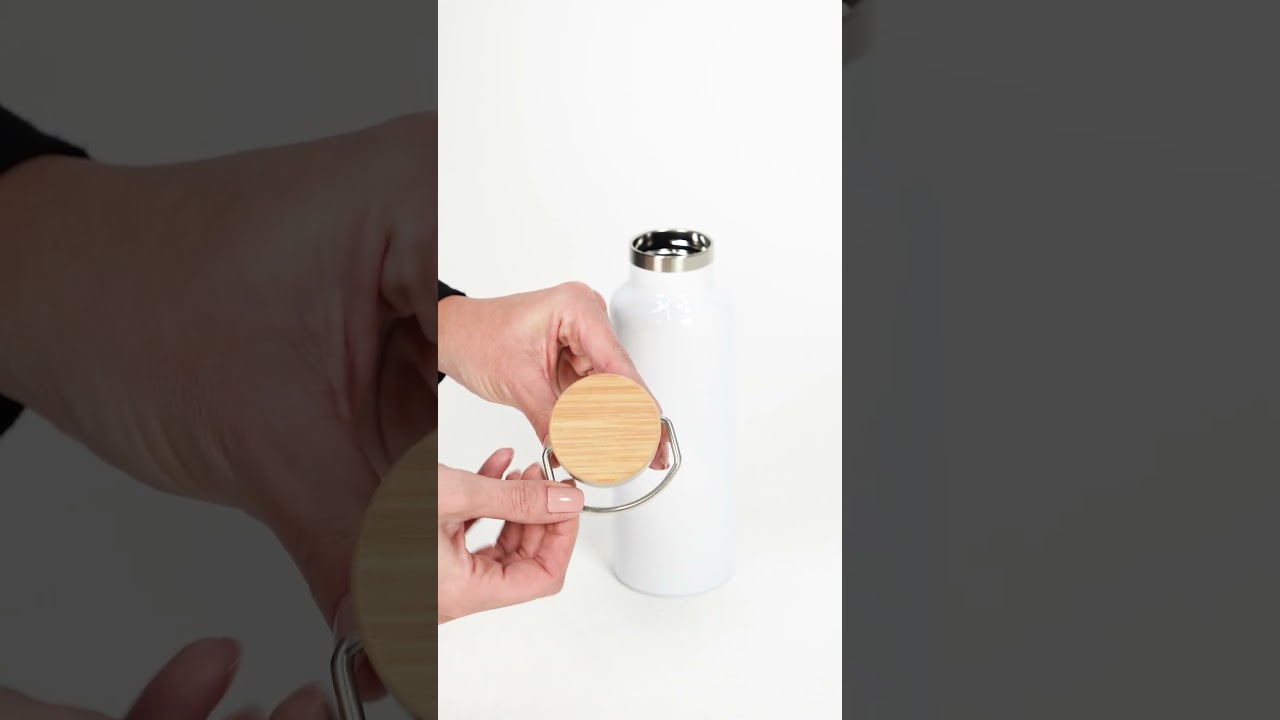 Produto Garrafa Térmica de Aço Inox Branco Tampa Bambu 500ml – caixa com 10 unidades
